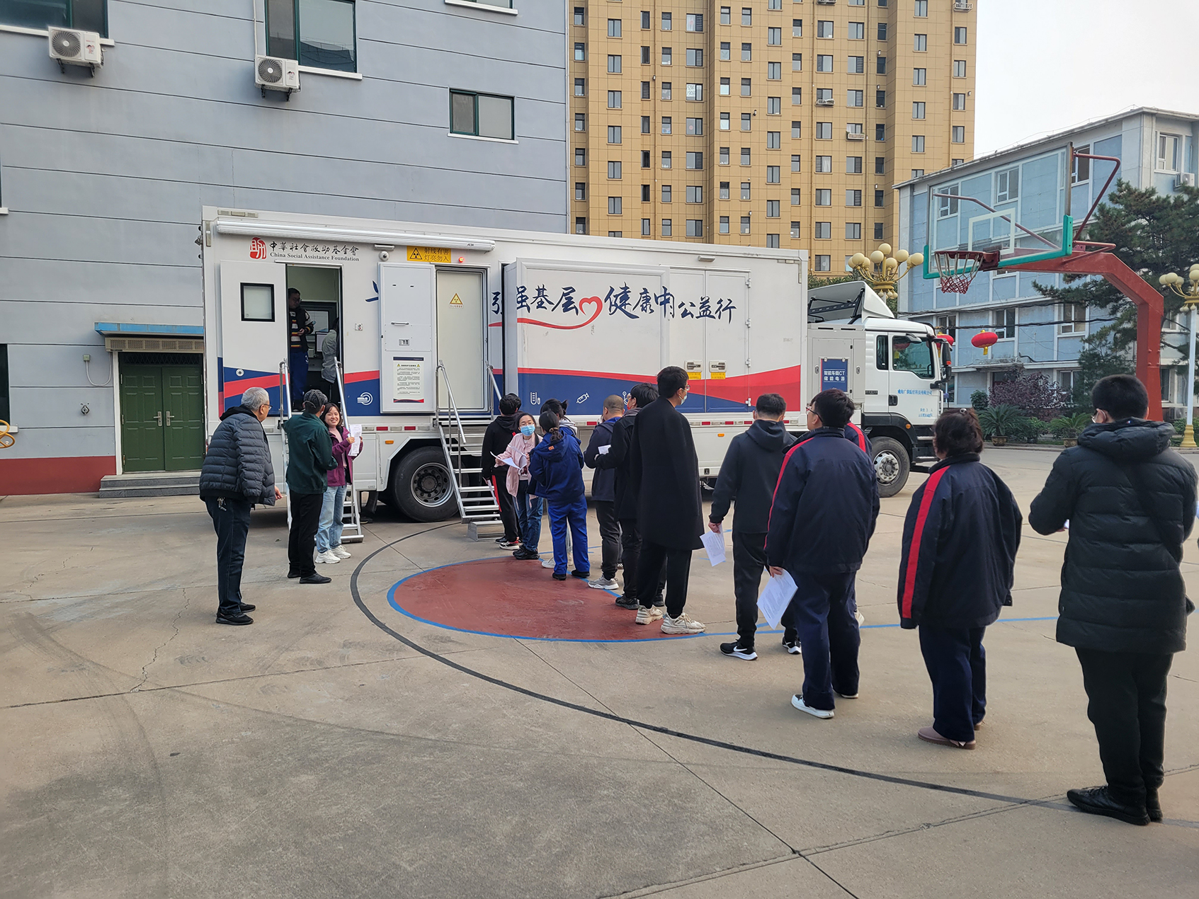 ▲在推進(jìn)疫情防控常態(tài)化條件下“關(guān)心關(guān)愛”主題行動(dòng)中,為表彰2020年度優(yōu)秀員工,有效保障員工身心健康,2021年11月30日下午,在公司院內(nèi)籃球場(chǎng),九泰集團(tuán)聯(lián)合中華社會(huì)救助基金會(huì)共同組織了“早篩早診強(qiáng)基層,健康中國(guó)公益行”公益活動(dòng),為九泰集團(tuán)優(yōu)秀員工進(jìn)行了肺CT檢查和胃癌高危因素篩查。此次篩查活動(dòng),以達(dá)到“早診斷、早預(yù)防、早治療”防病治病為目的,為員工健康構(gòu)筑起一道安全屏障,增強(qiáng)了員工的幸福感。